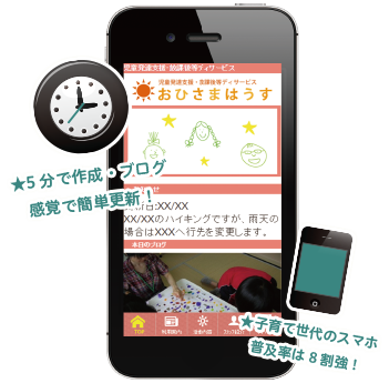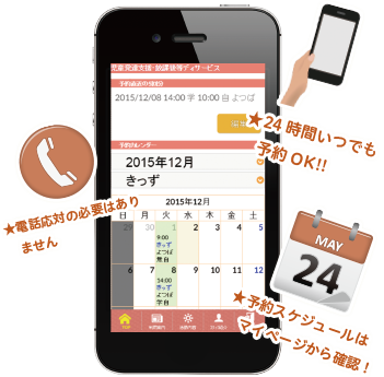 ”ママヨヤク”は放課後等デイサービス・児童発達支援施設向けのスマートフォンサイト作成と施設の利用予約を管理することができるサービスです。